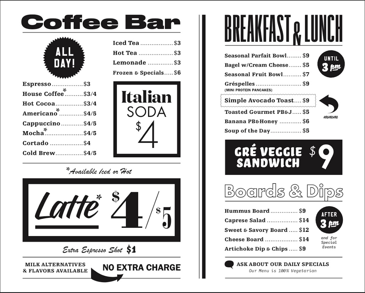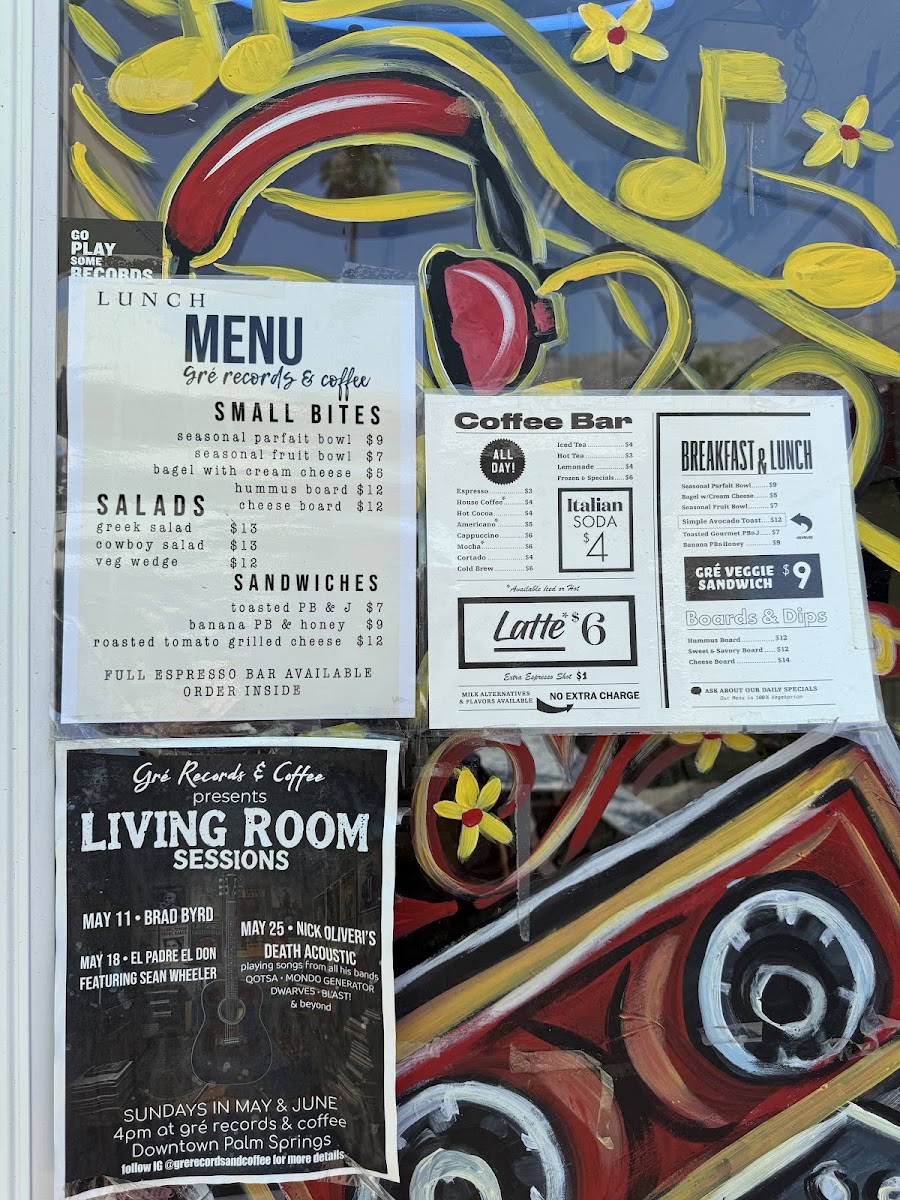 At Gré Records & Coffee (278 N Palm Canyon Dr Unit C, Palm Springs), the menu keeps things clean, familiar, and easy to enjoy-perfect for a casual stop where the focus is on simple, well-loved staples rather than an overloaded list. The Iced Coffee is the obvious go-to: cold, refreshing, and exactly what you want in Palm Springs when you need a quick caffeine hit that doesn’t feel heavy. If you’re after something light but satisfying, the Simple Avocado Toast delivers that classic balance of creamy avocado and toasted bread-straightforward, filling, and ideal for a relaxed breakfast or mid-day bite. For anyone skipping coffee or just wanting something cooler and calmer, the Iced Tea rounds out the highlights nicely, offering a crisp, easy sip that fits the same no-fuss vibe. Overall, the standout items feel intentionally uncomplicated, making the menu feel consistent and approachable-more about reliable comfort than trying to impress with complexity.